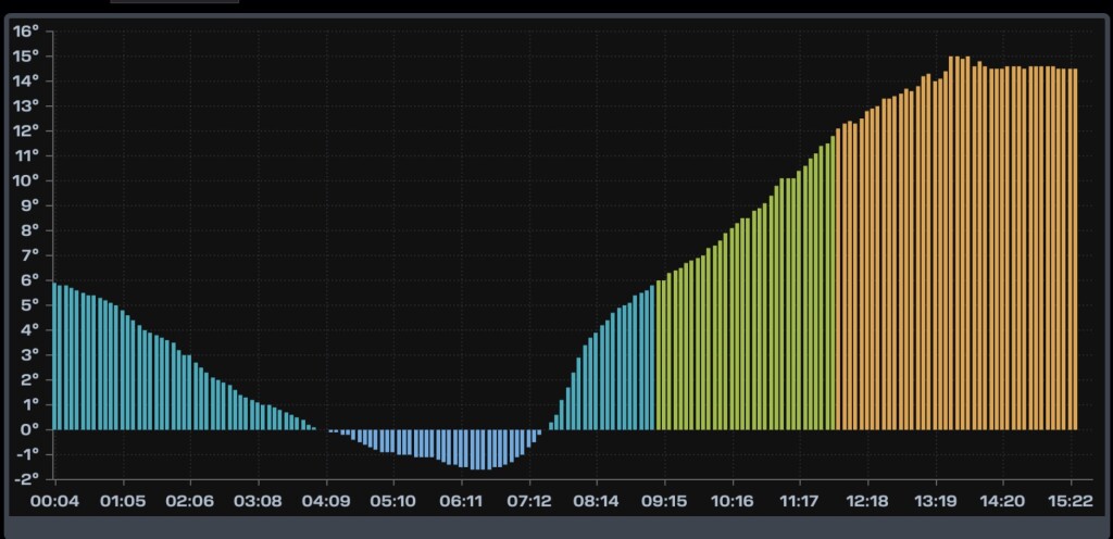 Iets het land in max 17,4 nu 16,4°C.