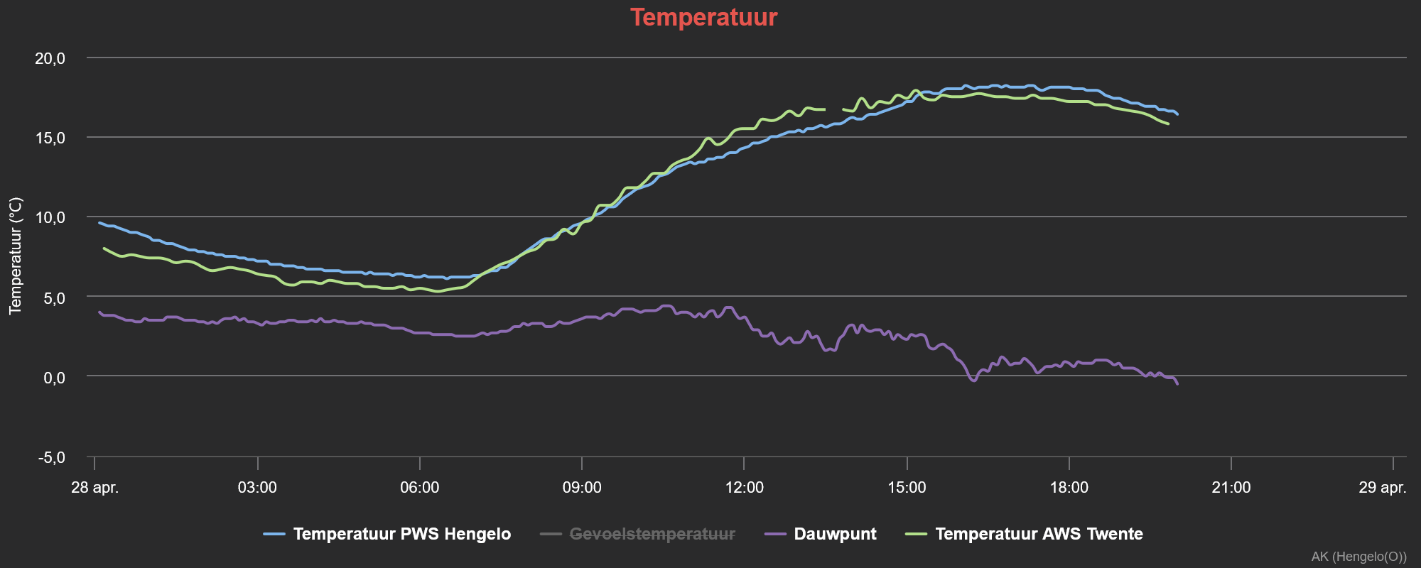 Rondje Tmax? 20,3°C, dauwpunt bijna onder het vriespunt!