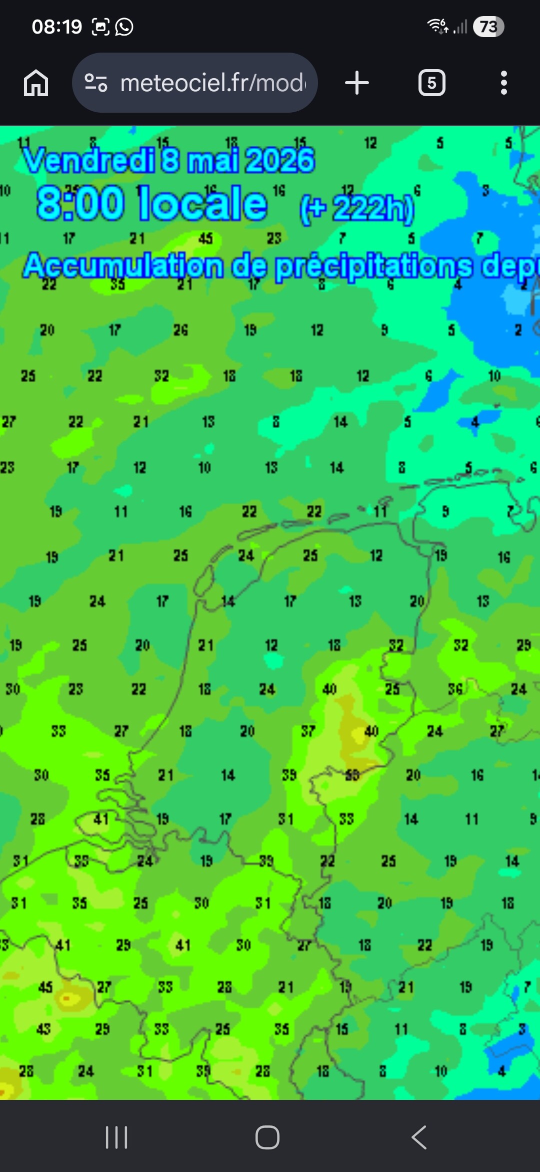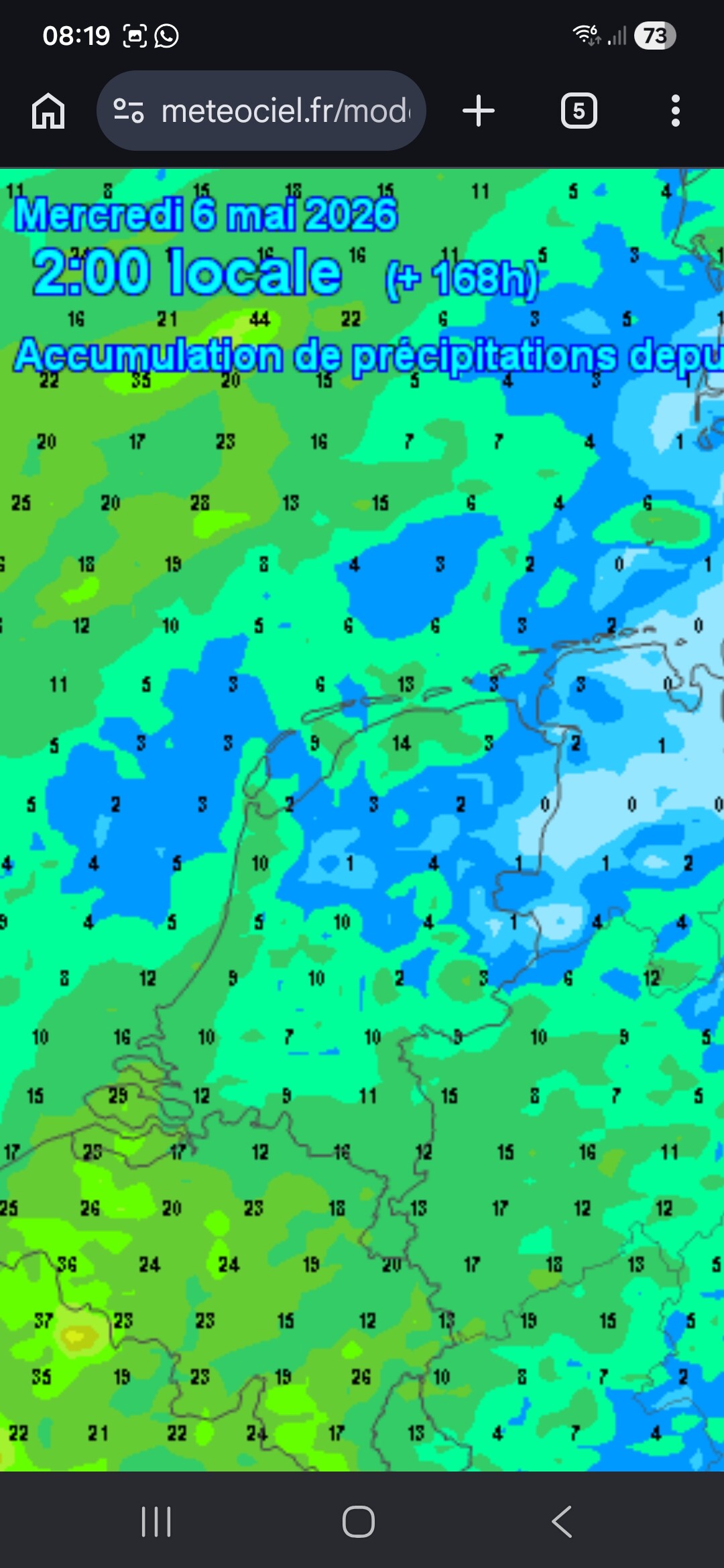 Screenshots van Meteociel kaartjes