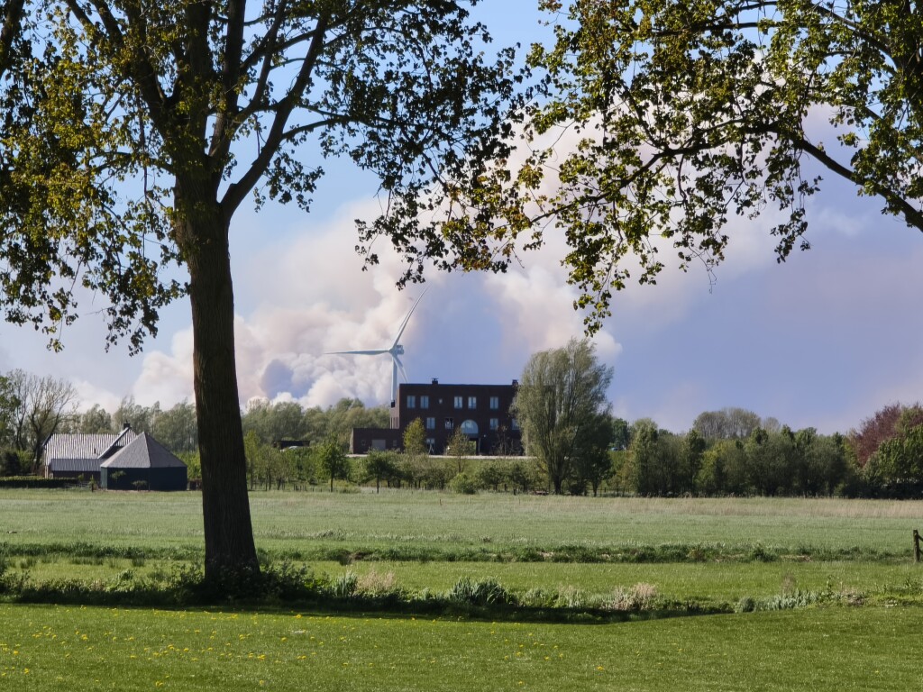 Hier in Nunspeet verdwijnt de zon achter de bruine rookwolken.