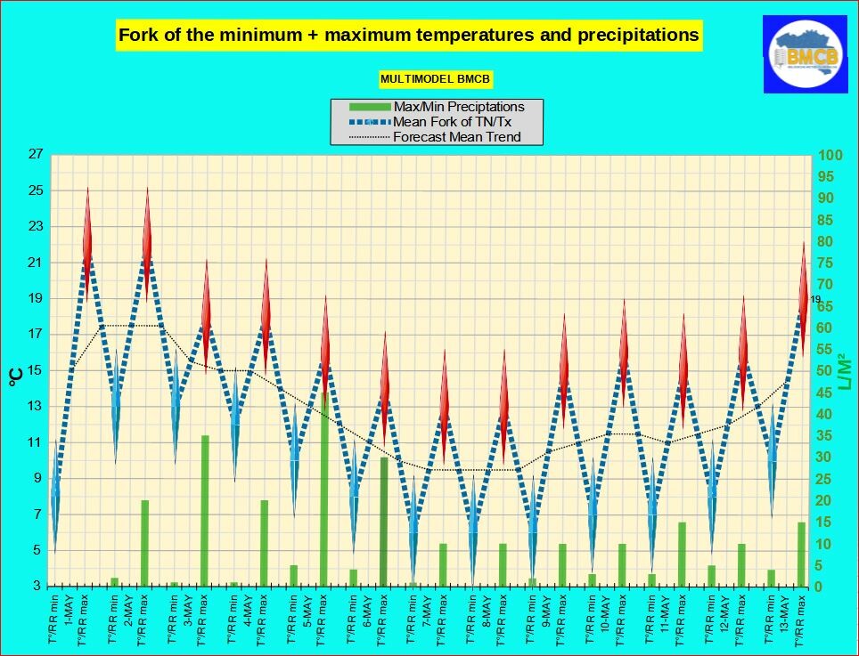 Synthese van de meteorologische evolutie volgens het BMCB-multimodel