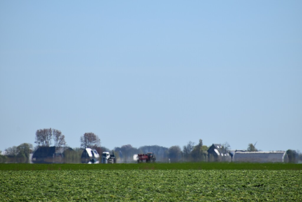 Foto's nu gemaakt met telelens om het nog wat beter in beeld te krijgen. Op de tweede foto passeren een vrachtwagen en tractor met aanhanger elkaar.