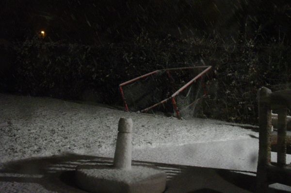 Lichte sneeuw in Bellingen met forse windvlagen!