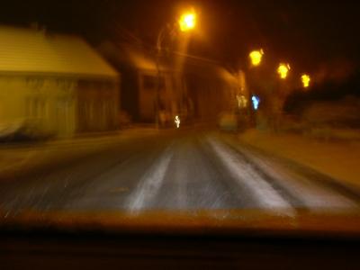 Net terug van Aalst. In het opgaan één strooier gezien en in het terugkeren ook. Wat opmerkelijk is dat je van hieruit vertrekt en eens op de steenweg vlugger kan rijden. Nu vriest alles aan... Onderweg één dikke tak zien liggen hier in de straat. Sneeuwt nog aardig door hier. Kzal men cecemellekken nu nie meer drinken. Nog veel sneeuwplezier iedereen, ik ga slapen