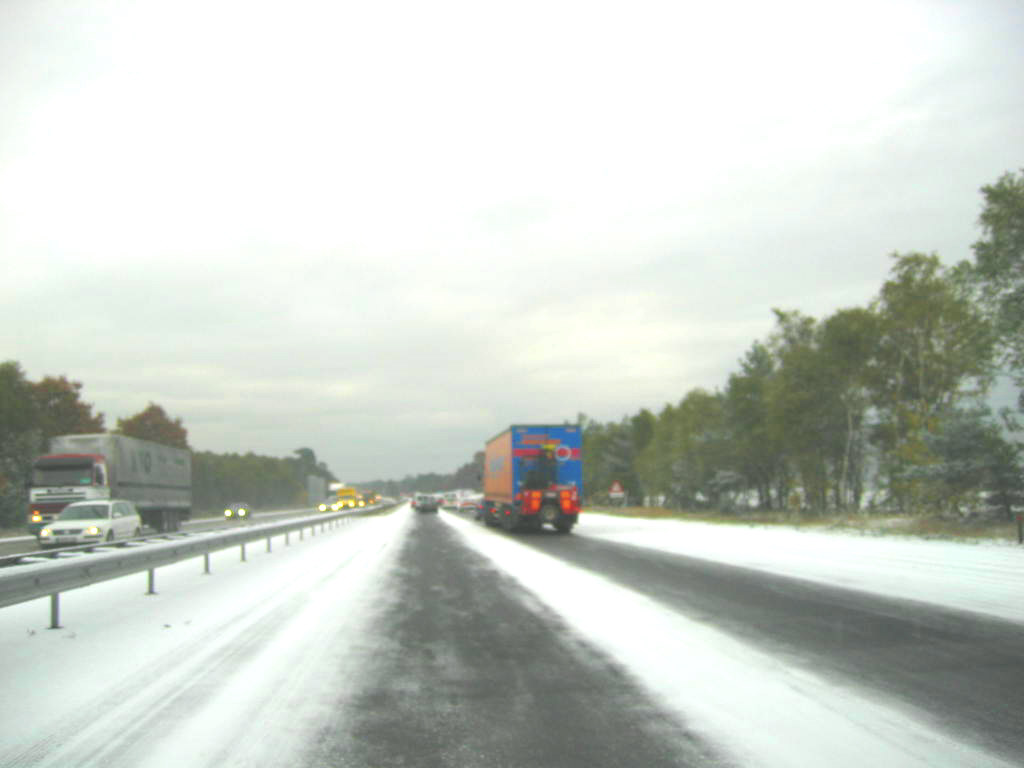 ...9.00 uur tussen Nunspeet en "t Harde. Opmerkelijk dat zandgrond toch zoveel sneeuw vasthoudt. 10 km voor Zwolle praktisch alles groen!