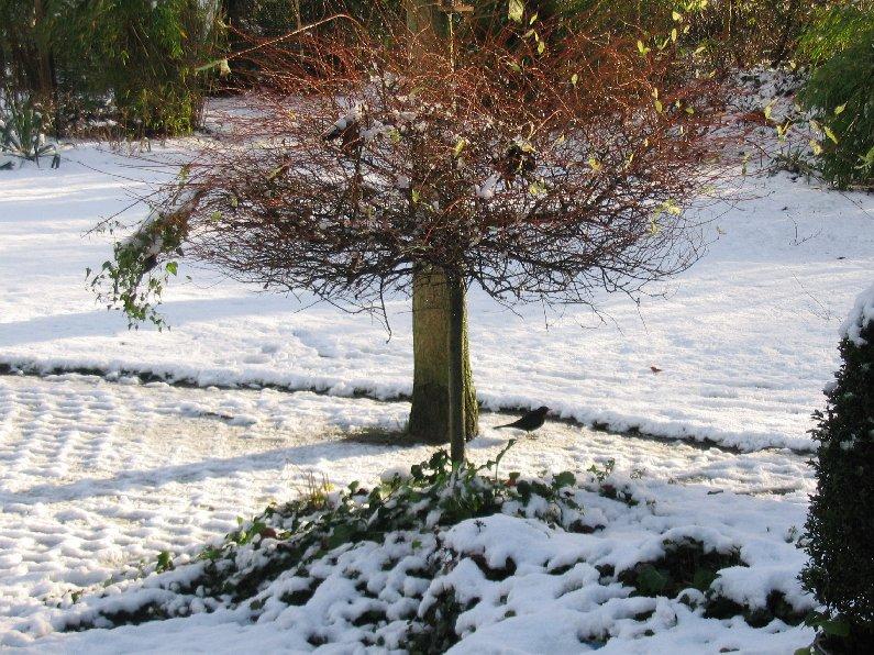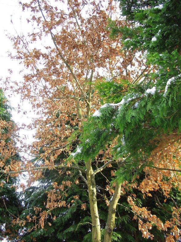 Eikje achterin de tuin nog flink in het blad (rest van de bomen en boompjes zijn nu wel aardig kaal).