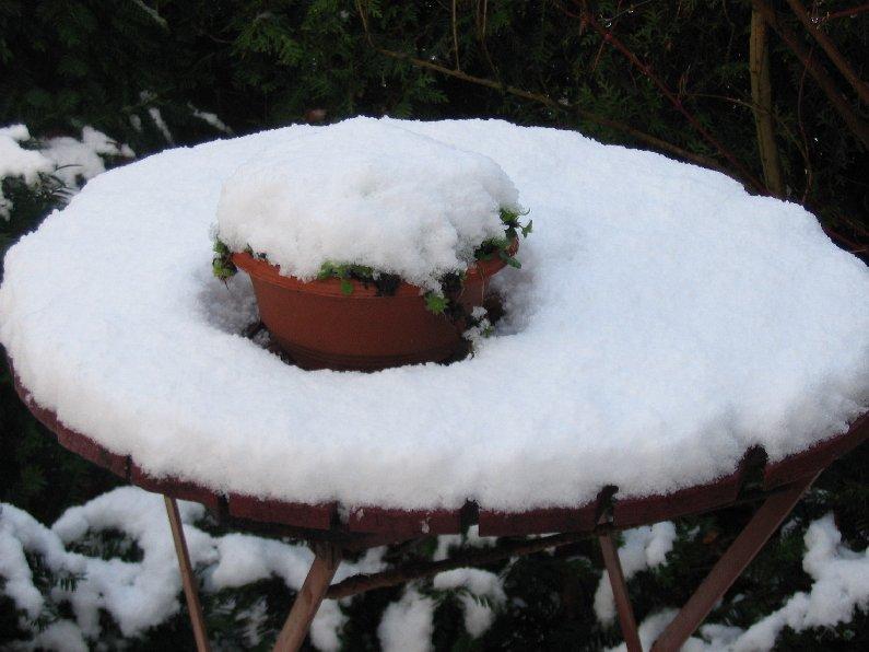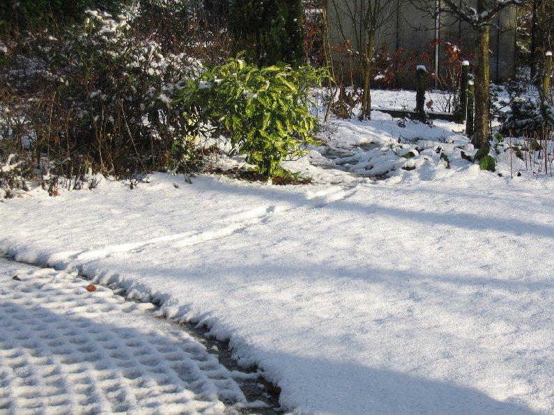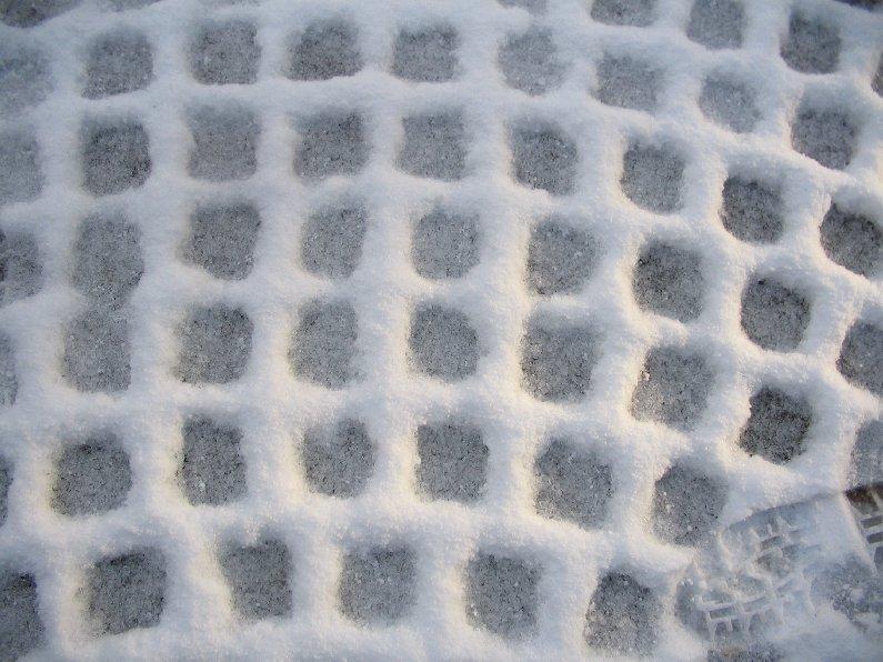 Grappig, de voegen tussen de stenen kouder dan de stenen zelf (dus bleef de sneeuw eerder liggen). Je ziet trouwens ook dat het om een mengeling van sneeuw en hagel gaat.