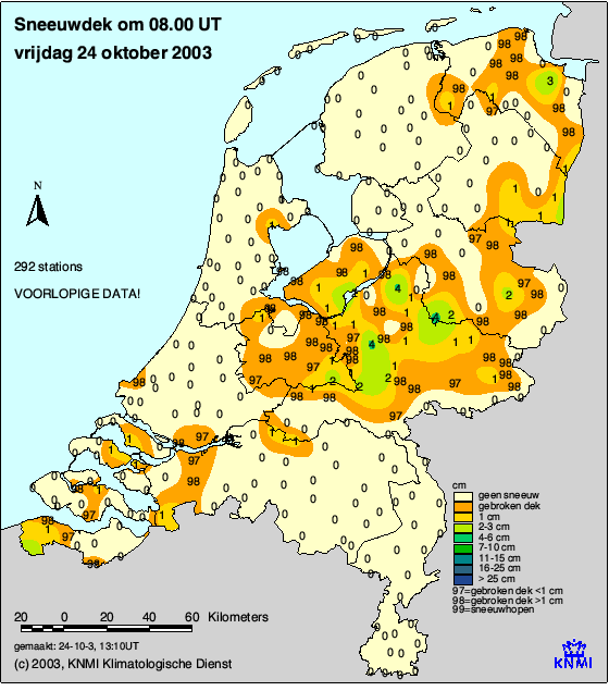 Waarom er zoveel onzin op het onderstaande KNMI-sneeuwhoogtenkaartje staat? Er zal wel raar om zijn gegaan met sneeuwhoogten minder dan een cm, of neerslagmetingen minder dan een mm.