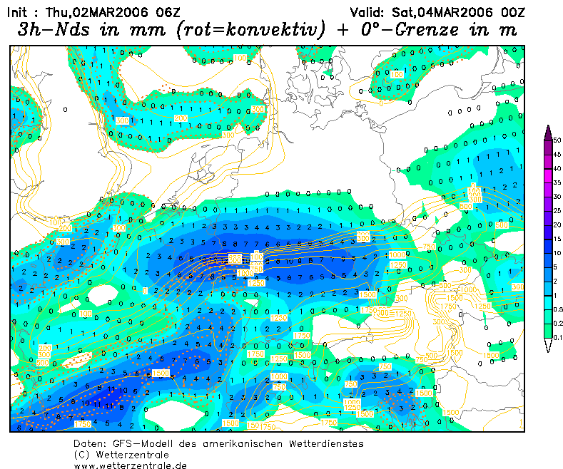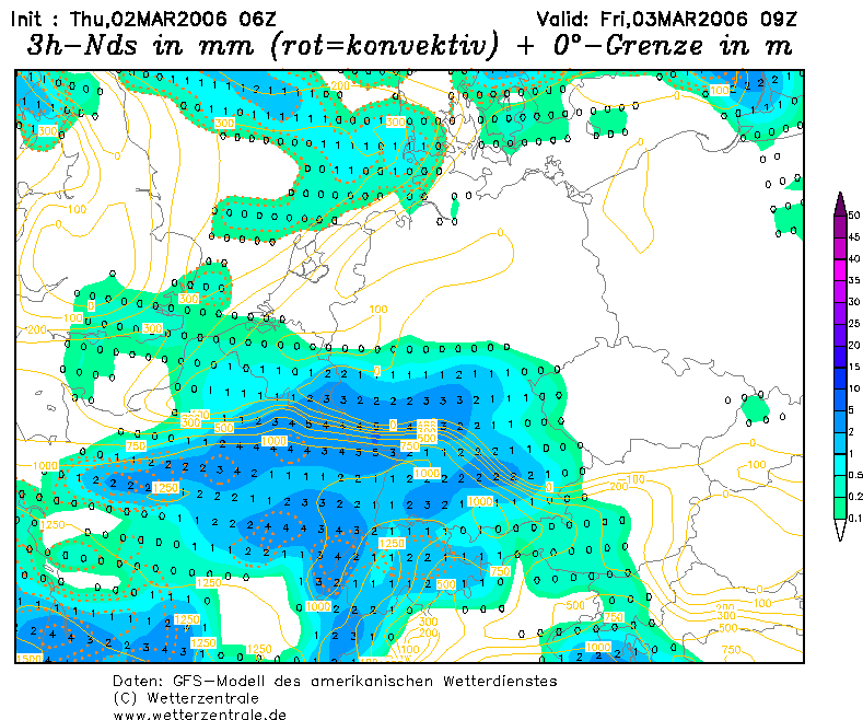 GFS blijft de neerslag dus grotendeels ten zuiden van Vlaanderen houden, met beperkte hoeveelhden hoe dan ook: