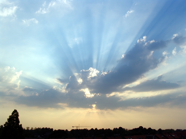 Vanavond waren er prachtige crepesculaire stralen, zoals onderstaande foto laat zien: