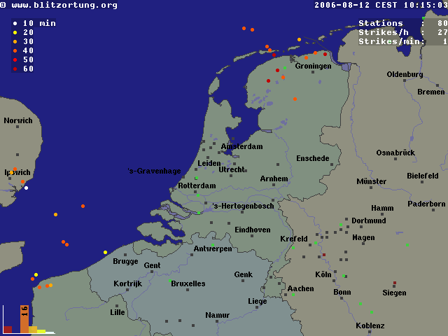 heel veel onweer ik zie in de kop van holland heel veel onweer, op het kanaal ook onweer.