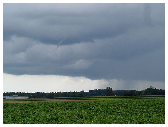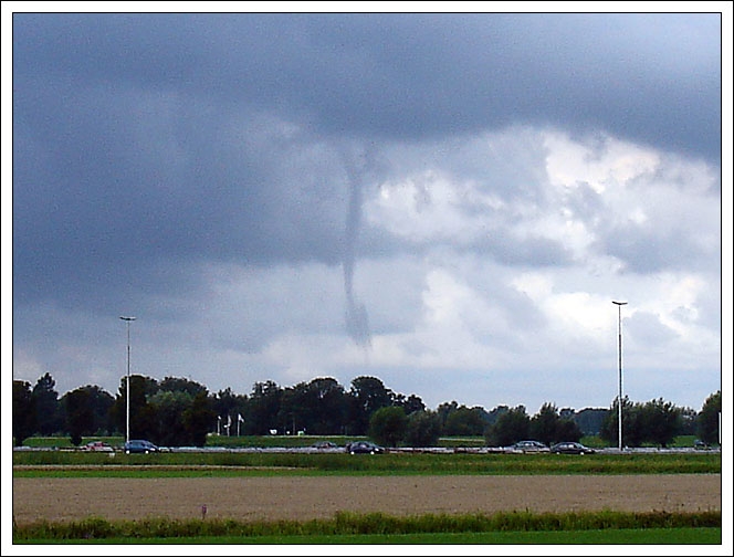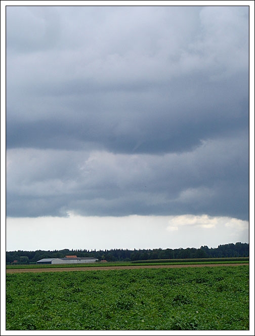 Duidelijk is te zien dat we de hoos dichter zijn genaderd. De derde foto is nog iets later.