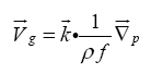 c de kracht uitgeoefend door de Coriolis kracht. Het resultaat is de geostrofische beweging (V