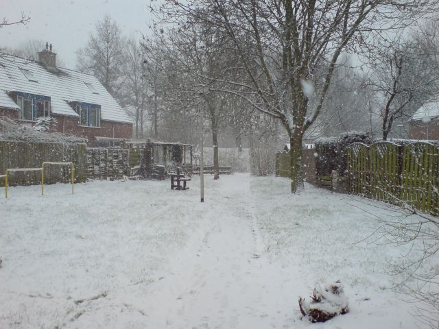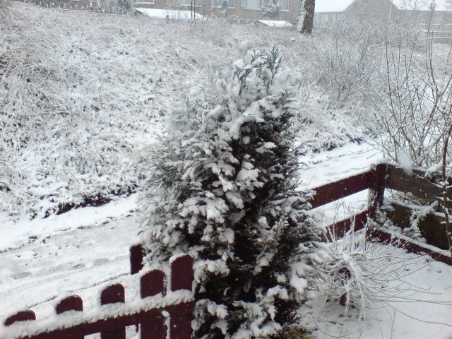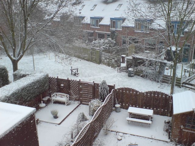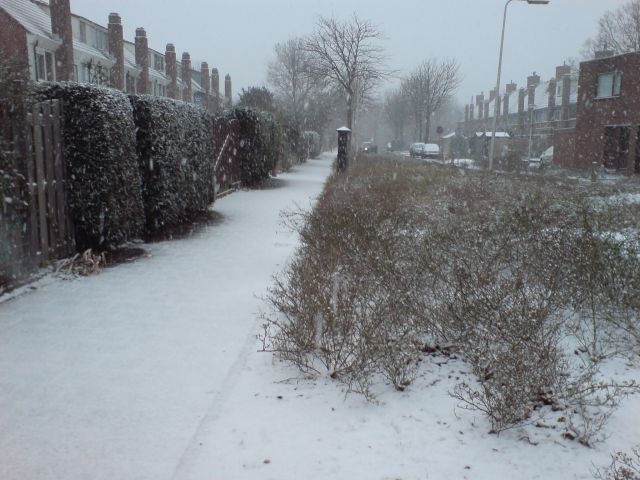 Dit is het eerste deel van m'n foto's over de sneeuwval van vandaag. In totaal is zo'n 5 cm aan sneeuw gevallen. Op dit moment ligt de temperatuur ruim boven 0 en smelt alles weer weg.