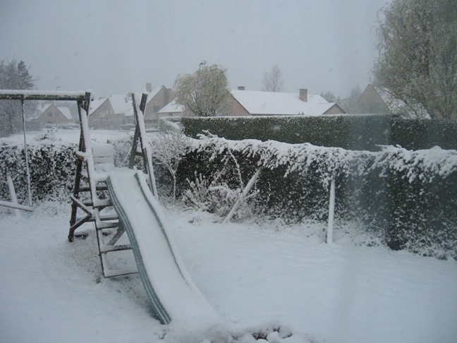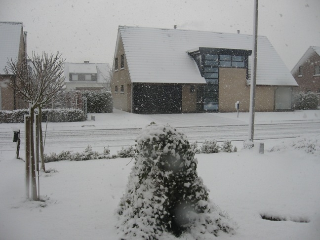 Mijn verwondering was groot deze ochtend. Toch ook een dikke 10 cm hier. Alles ligt er mooi wit bij. Gevolg grote paniek natuurlijk en verkeerschaos. Hier enkele plaatjes van daarnet.