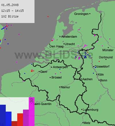 Op het laatste kaartje zie ik wel puntjes in die omgeving? Kaartje van blids.de wordt om de 15min geupdate (buienradar.nl om de 5 min).