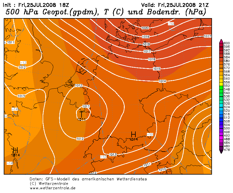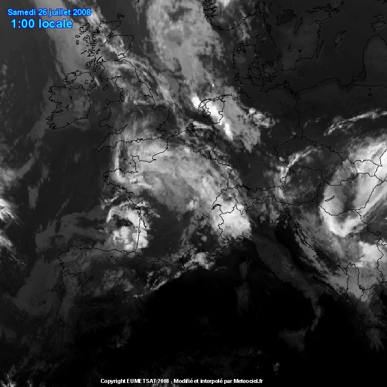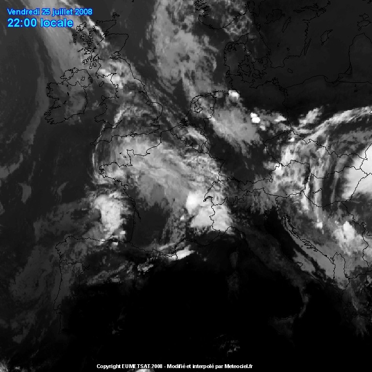 Vanavond hebben we misschien dit effect zien optreden. Op de satellietbeelden van resp. 22 en 01 uur lokale tijd zien we dat zich op de zuidwestelijke grens van een wolkenband ten noorden van de grote rivieren en boven West-Duitsland flinke onweersbuien ontwikkelen rond en vooral ook na zonsondergang.