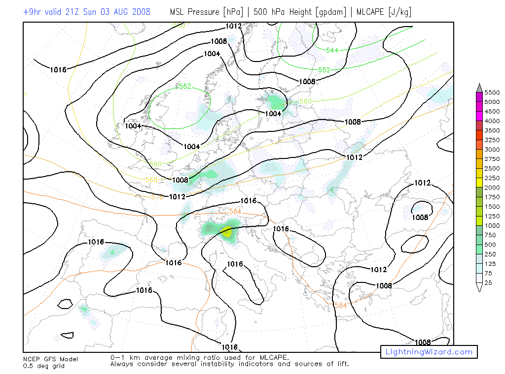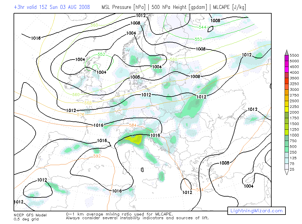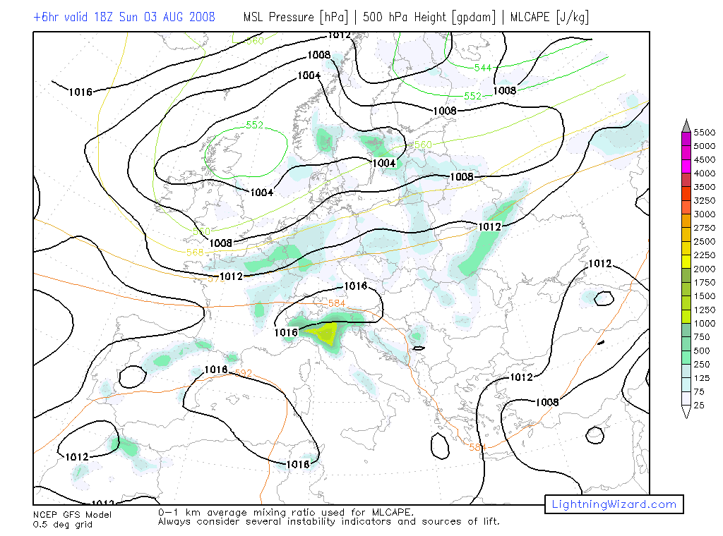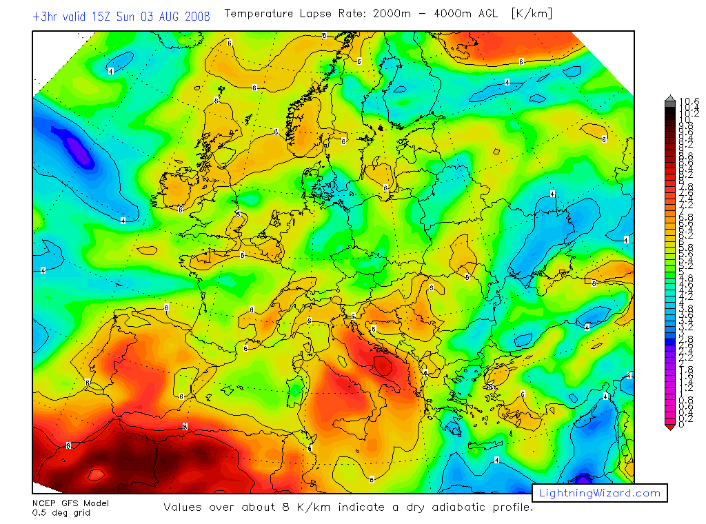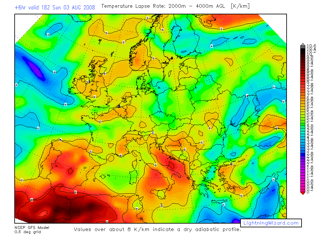 GFS12Z Lightningwizard kaarten voor 17u lokale tijd: