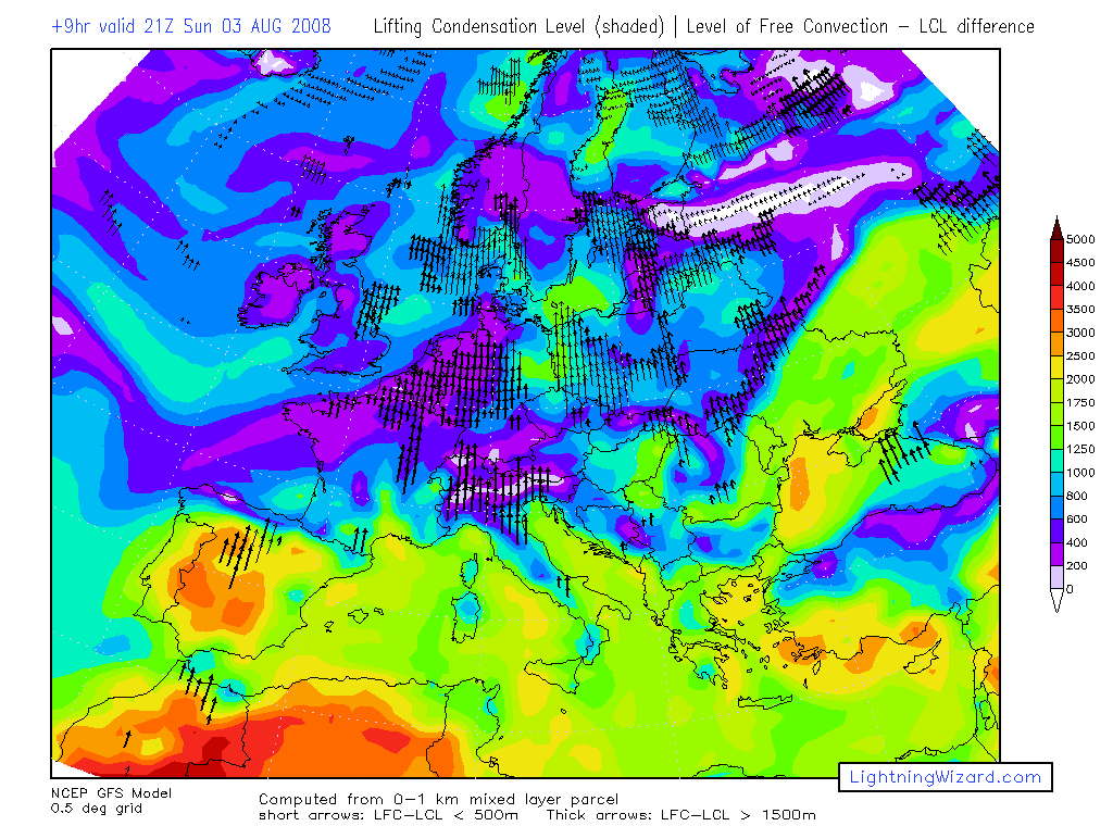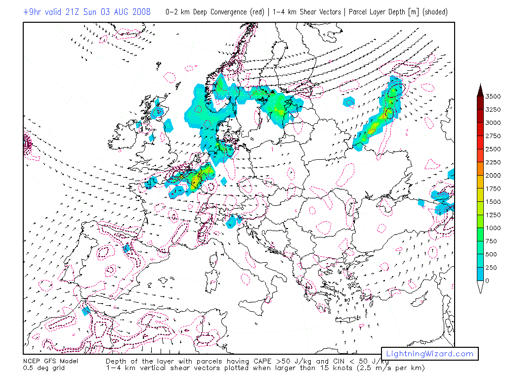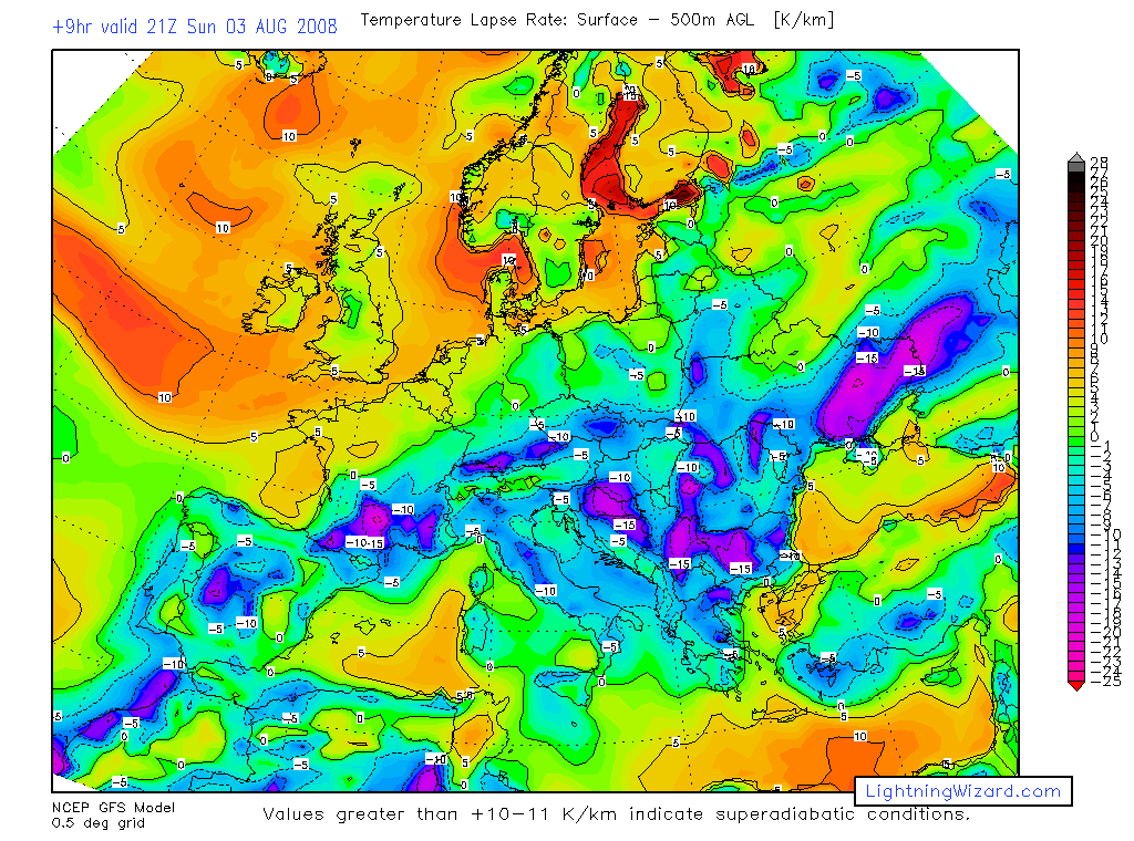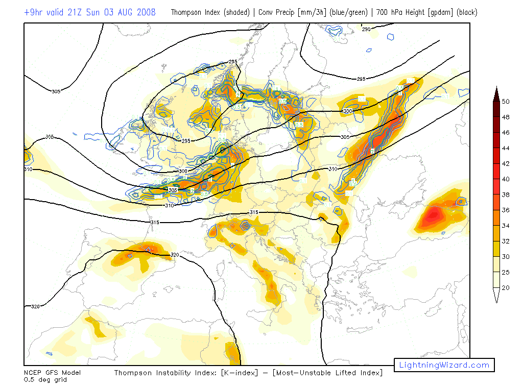 GFS12Z Lightningwizard kaarten voor 21u lokale tijd: