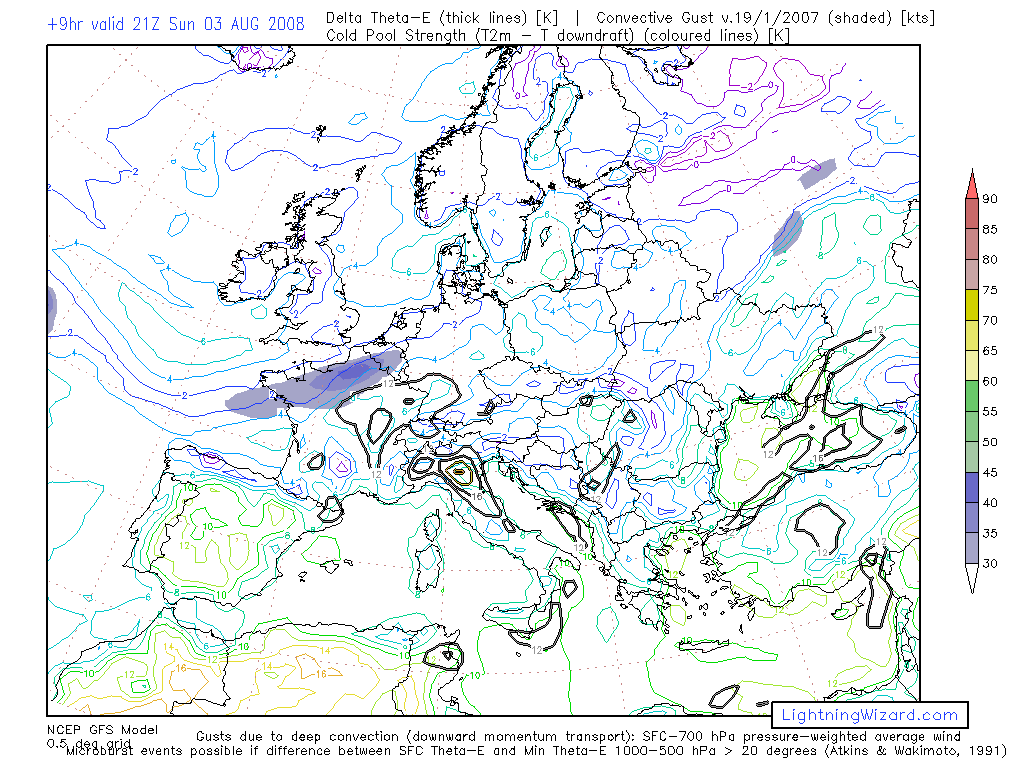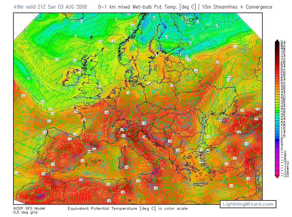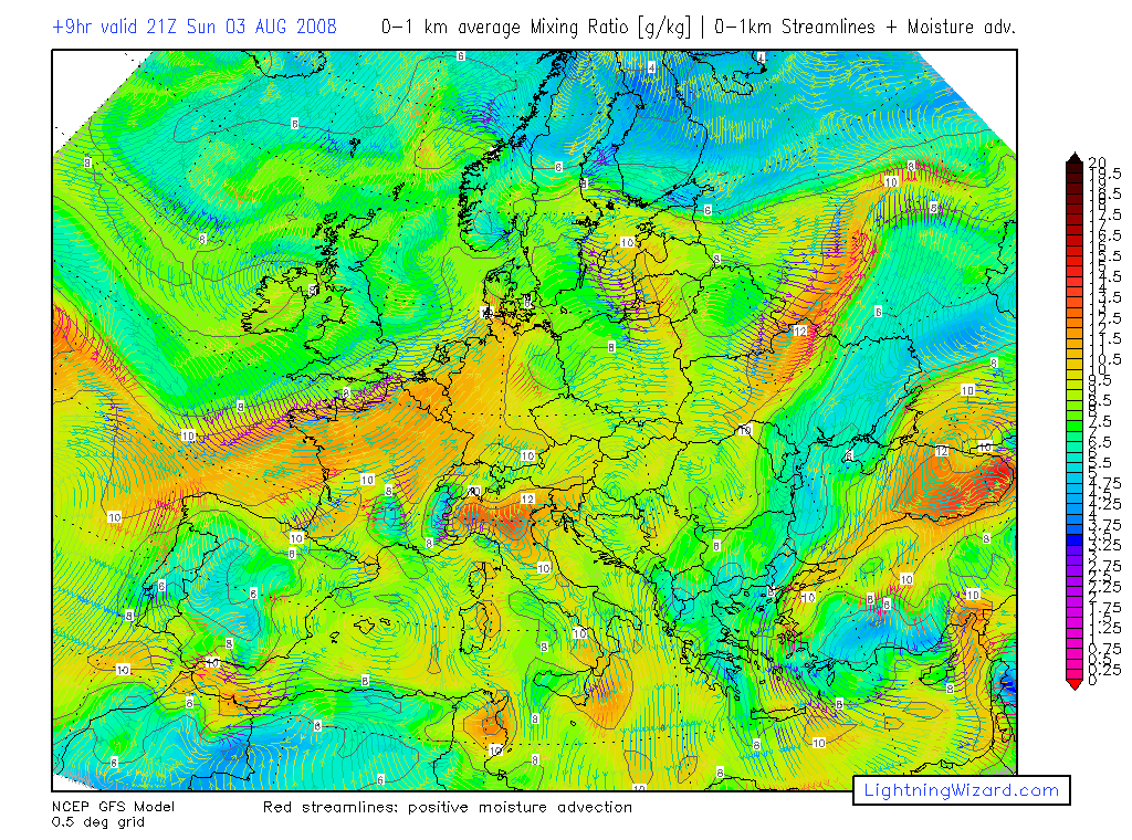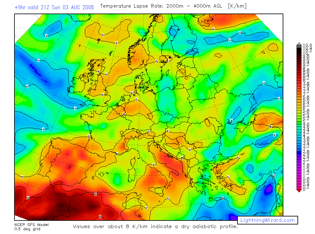 GFS12Z Lightningwizard kaarten voor 21u lokale tijd: