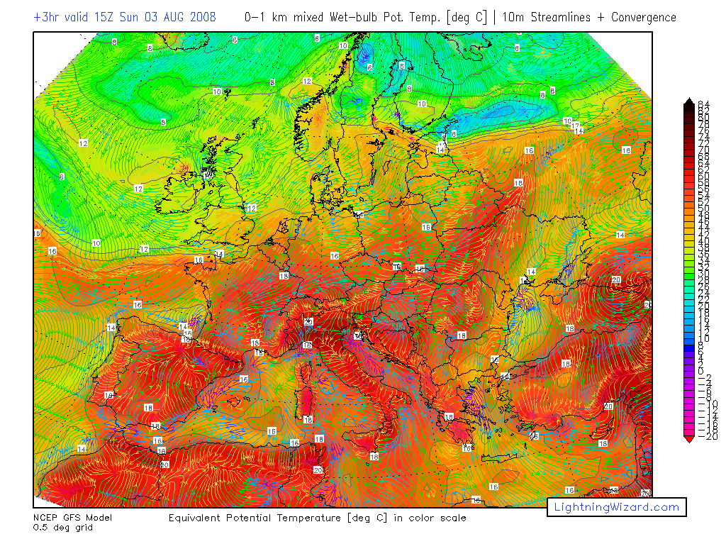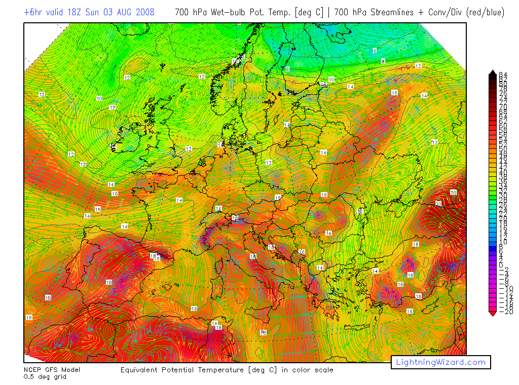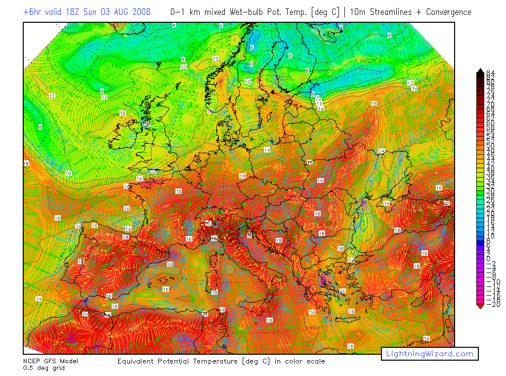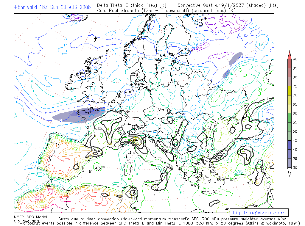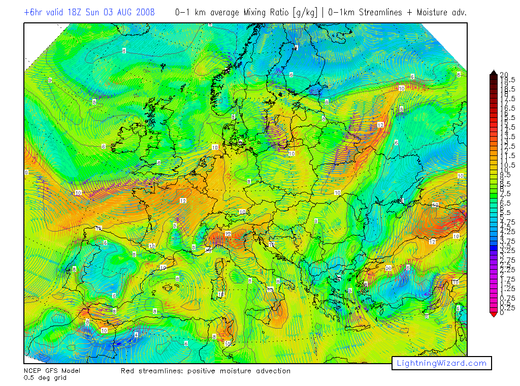 GFS12Z Lightningwizard kaarten voor 20u lokale tijd: