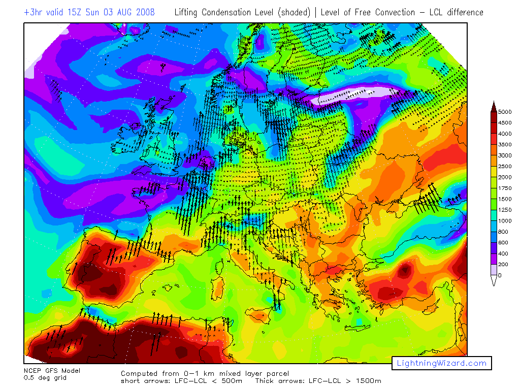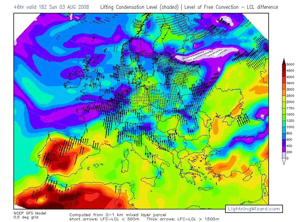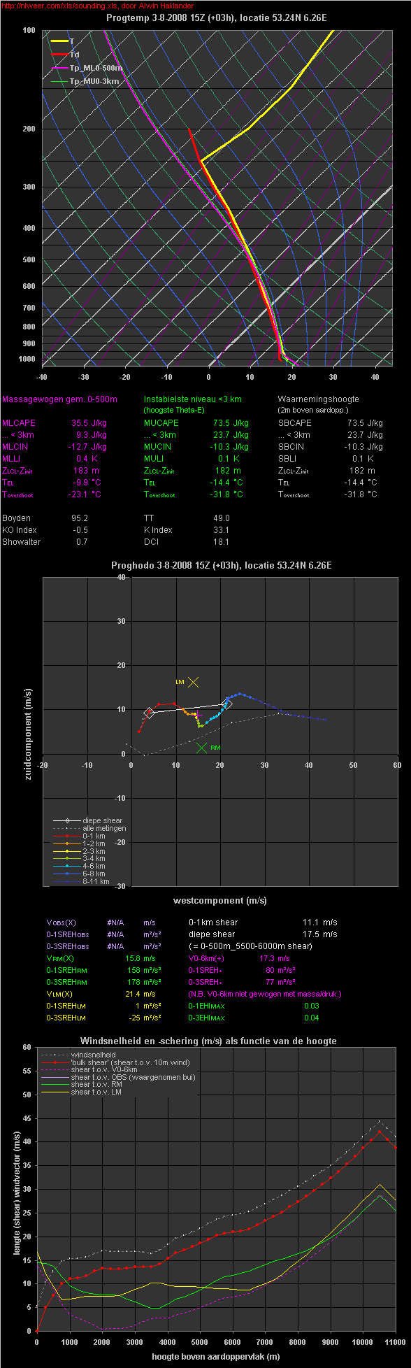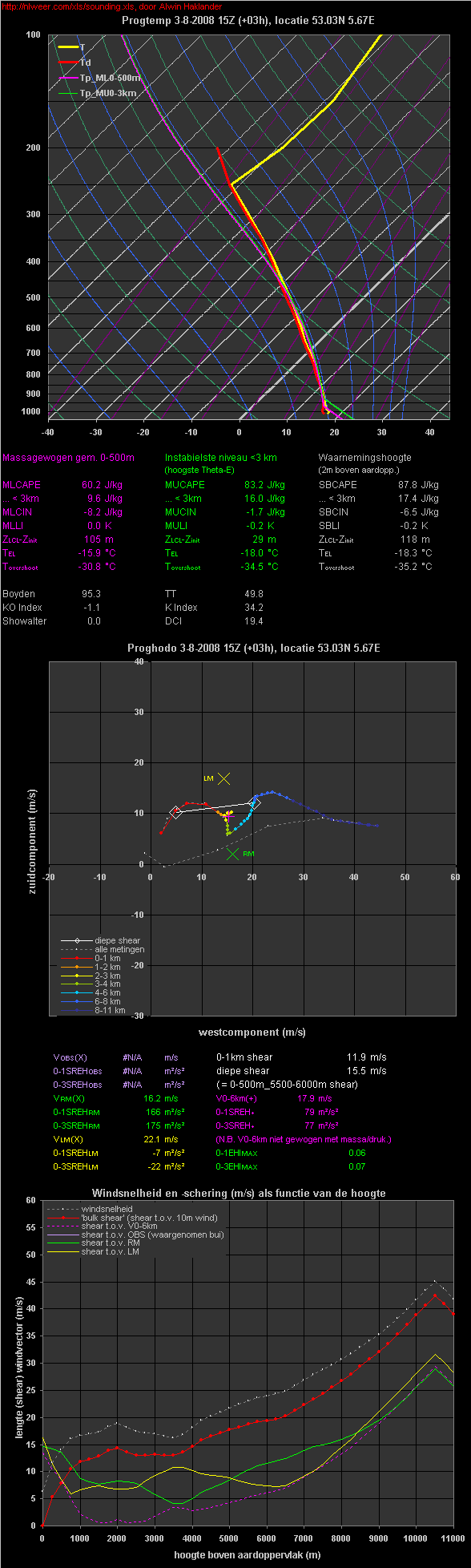 De progtemp van Sneek om 17u laat zelfs een waarde van 166 m²/s² zien..., en dat met bijzonder lage condensatieniveaus van misschien nog enkele honderden meters (volgens de progtemps orde 100m boven de grond). Je ziet op dat YouTube filmpje ook duidelijk dat de wolkenbasis zeer laag hangt: