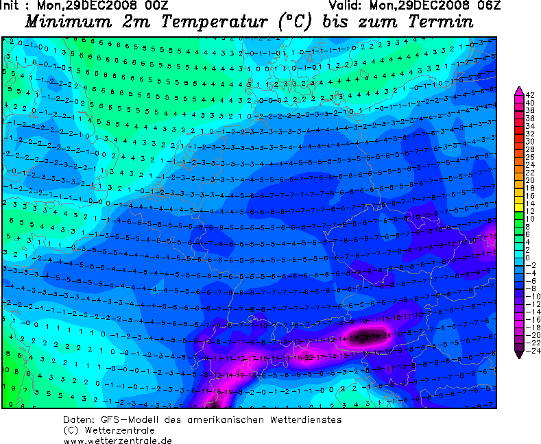 Nu de nachtelijke vorst meer en meer een stralingskarakter krijgt zit GFS een graad of 4 te hoog wat de minima betreft: