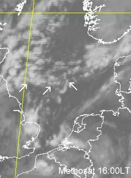 Krul gaat zich ontwikkelen ergens in het gebied tussen de pijltjes, en trekt zuidwaarts.
